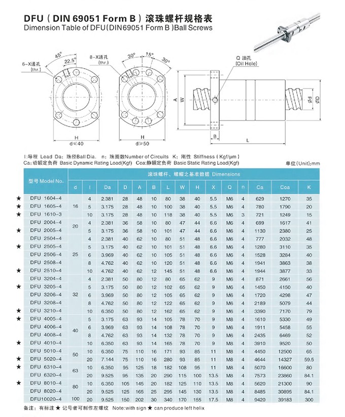 DFU(DIN 69051 Form B)滾珠螺桿